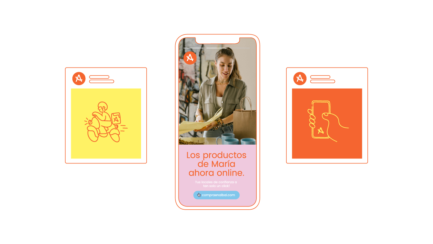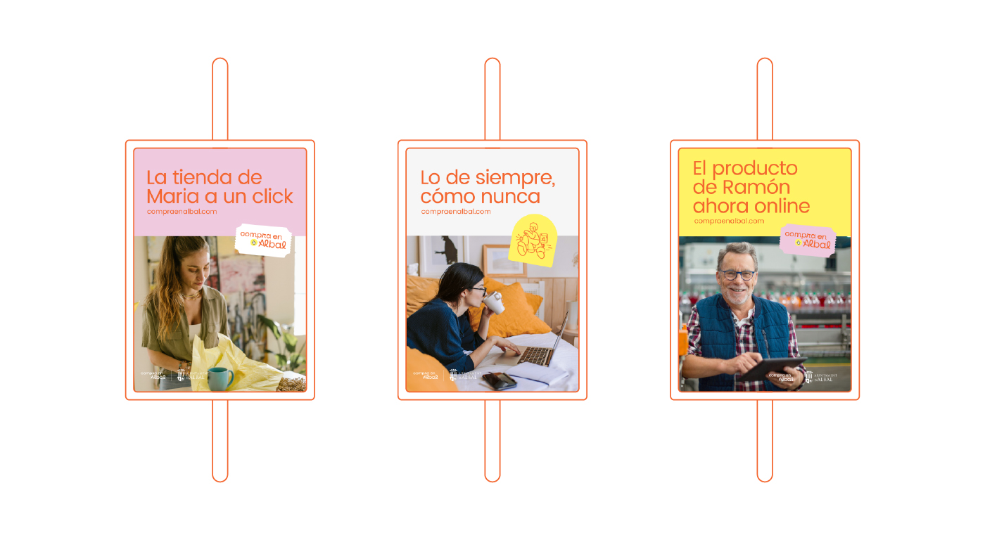 Cuando el Ayuntamiento de Albal contactó con nosotros tenía una necesidad: promocionar su comercio local tras la pandemia. El proyecto que tenían en mente giraba en torno a una plataforma online en la que se podían comprar productos que habitualmente se podían encontrar en los comercios del municipio, facilitando así el proceso de compra como si de cualquier otra plataforma online se tratara. Nuestra aportación en el proyecto fue la de dar una imagen y una identidad gráfica a esta iniciativa, empezando por un logotipo, continuando con la comunicación tanto en canales online como offline y con la guía de estilos para su plataforma web.