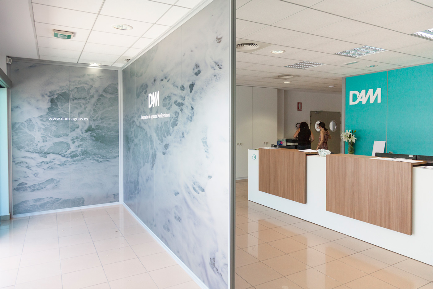 La confianza depositada por DAM en nuestro trabajo nos ha permitido realizar un proyecto de restyling integral, en el que también nos hemos ocupado de la rotulación y señalética del edificio principal.