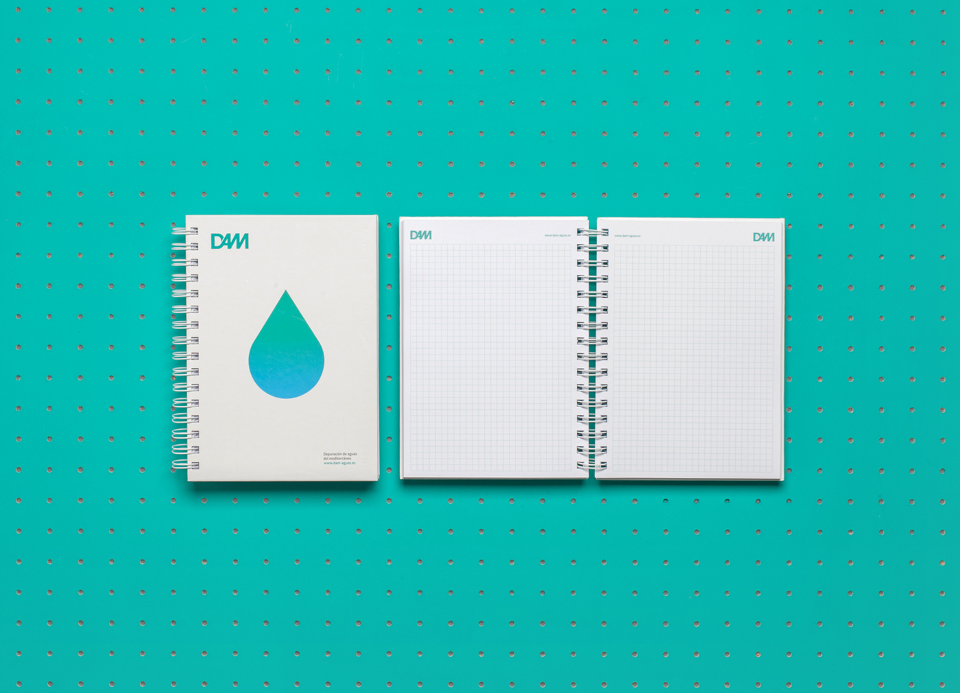 Como siempre, antes de empezar, llevamos a cabo un estudio que nos indicó en qué dirección debíamos trabajar y cómo debíamos hacerlo. Sustituimos el color verde de la marca, algo anticuado, por un verde mucho más actual y agradable, que combinamos con azul mediante un degradado que simboliza la transformación del agua mediante el proceso de depuración. Además de la identidad corporativa, nos encargamos también del merchandising, de la papelería corporativa y del resto de material de uso interno: folders, fichas, folletos corporativos, pictogramas. La idea era que la mejora se manifestase hacia fuera, pero también hacia dentro; que además de los clientes, también los empleados percibiesen y disfrutasen la evolución de la empresa.
