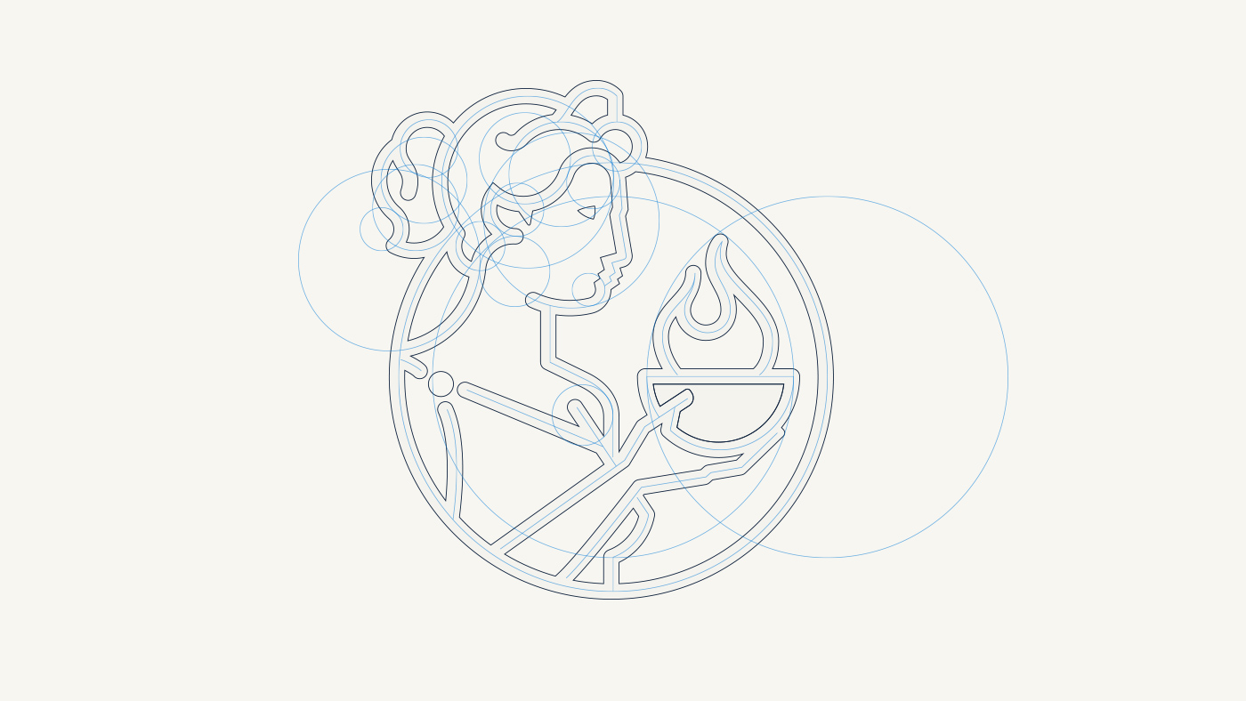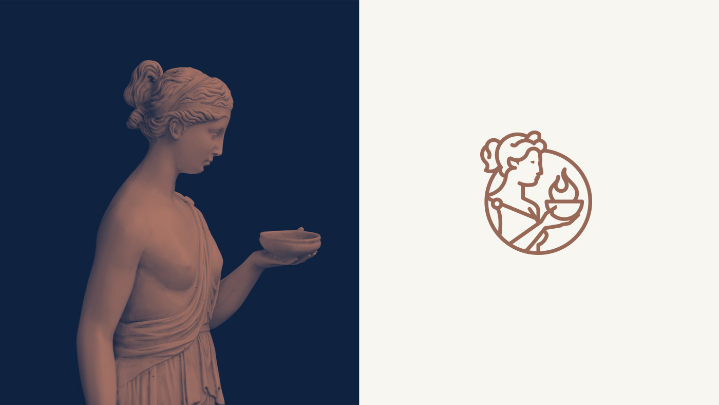 Para la representación del icono de la marca, decidimos que la mitología podía ser un ambiente coherente para encontrar un referente. Encontramos a Vesta, deidad romana equivalente a la Hestia griega, protectora de Roma, además de diosa del fuego y del hogar.