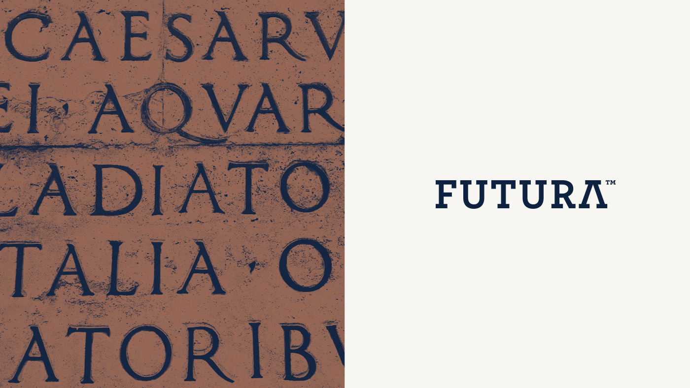 Futura es un participio del verbo latín essere, que significa ‘lo que está por venir’, así que empezamos a trabajar en la identidad corporativa con el latín de su naming como concepto. Desarrollamos la tipografía basándonos en las robustas letras capitales romanas, que aportan los valores de fuerza y seriedad que buscábamos, pero actualizando sus formas usando una fuente slab que modificamos ligeramente para que sugiriese ilustres rasgos romanos.