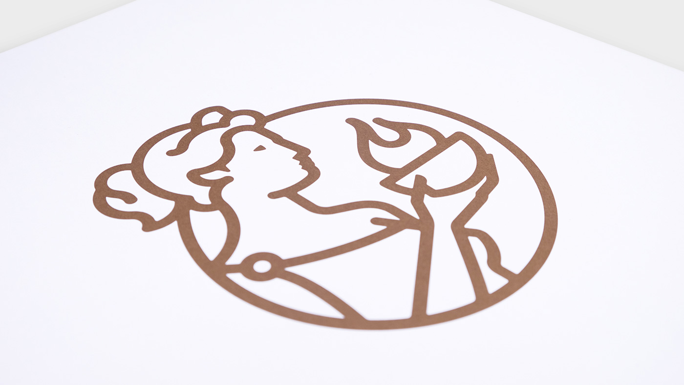 Para la representación del icono de la marca, decidimos que la mitología podía ser un ambiente coherente para encontrar un referente. Después de estudiar mucho el vastísimo panteón mitológico griego y romano, encontramos a Vesta -deidad romana equivalente a la Hestia griega-, protectora de Roma, además de ser diosa del fuego y del hogar. A Vesta se la representaba portando un cuenco con fuego, llama que simbolizaba el bienestar de la república.