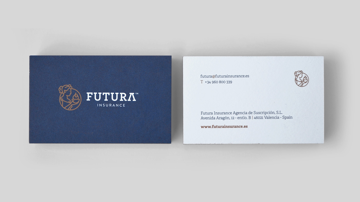 Dado que nuestra labor no termina en el diseño, sino que también elegimos materiales, calidades y gestionamos la impresión si el cliente lo requiere, en el caso de Futura optamos por emplear papeles y tintas premium, de color cobrizo metálico, para cerrar el proyecto con un último matiz que evocase una imponente tradición, sólida y por todos conocida, en una marca cuyo nombre habla sin embargo de lo que vendrá.