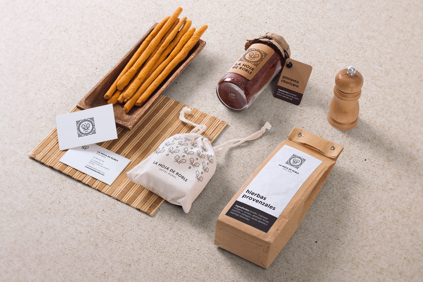 Diseño de identidad corporativa, packaging y gráfica aplicada para el hotel rural La Hoja de Roble