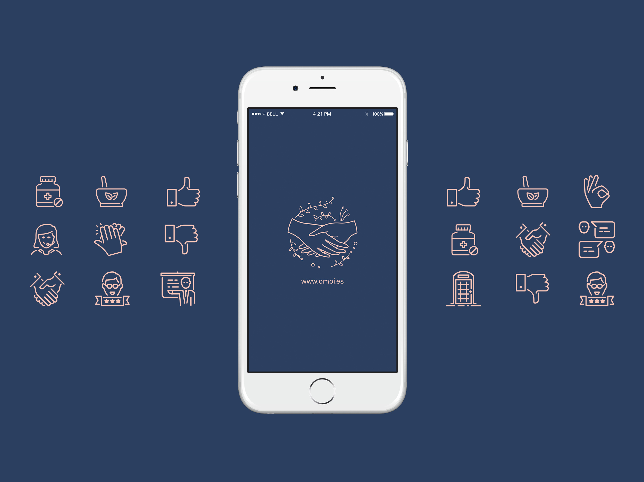 En 2018, contactaron con Pixelarte para construir una identidad corporativa alrededor de su nuevo proyecto. Su marca todavía no tenía nombre, así que comenzamos por ahí. En sánscrito, la filosofía de trabajar en equipo y crear una sintonía para lograr una comunicación más efectiva, recibe el nombre de ‘omoi’. Nos pareció un término impactante, compacto y que no estaba registrado para ninguna otra empresa, por lo que decidimos escogerlo para el naming de la marca. Además, nuestras clientas nos pidieron trabajar también en el branding integral de su proyecto.