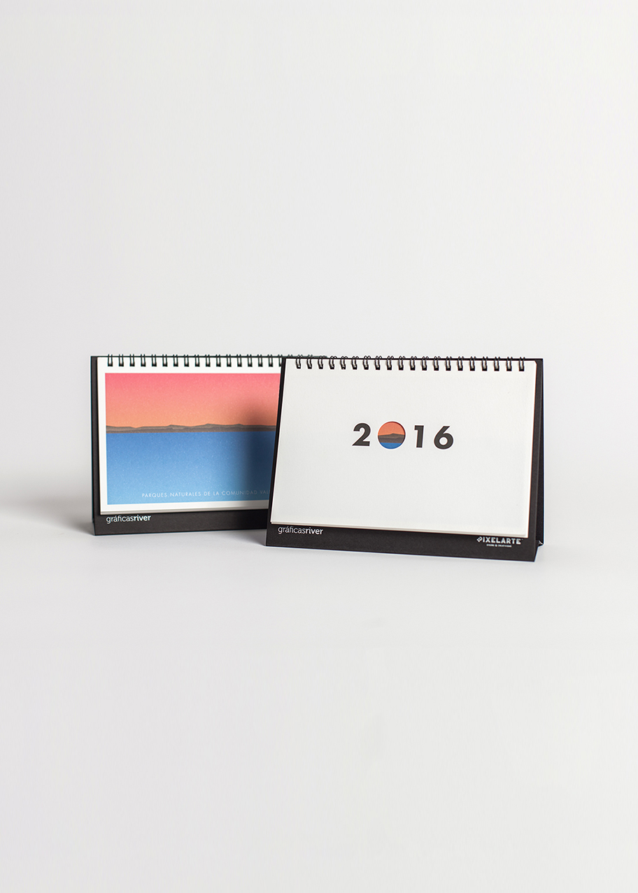 Este año 2016 queríamos regalar a nuestro entorno -familiares, amigos, clientes y proveedores- algo especial, algo nuestro, y de esta forma acompañarles a lo largo de los doce meses deseándoles un año fantástico. Por este motivo, Gráficas River y Pixelarte decidimos unir fuerzas y aportar lo que mejor sabe hacer cada uno en un proyecto común: Pixelarte se encargaría del diseño e ilustración de todo el proyecto, y Gráficas River de la impresión y encuadernación de este precioso calendario.