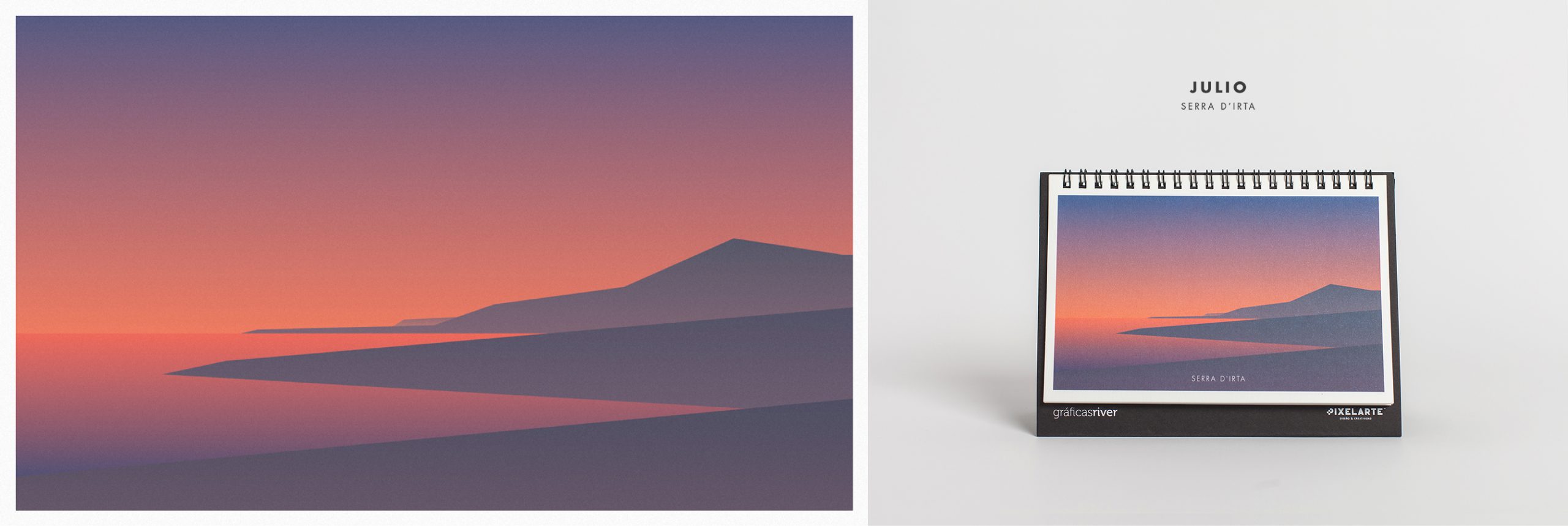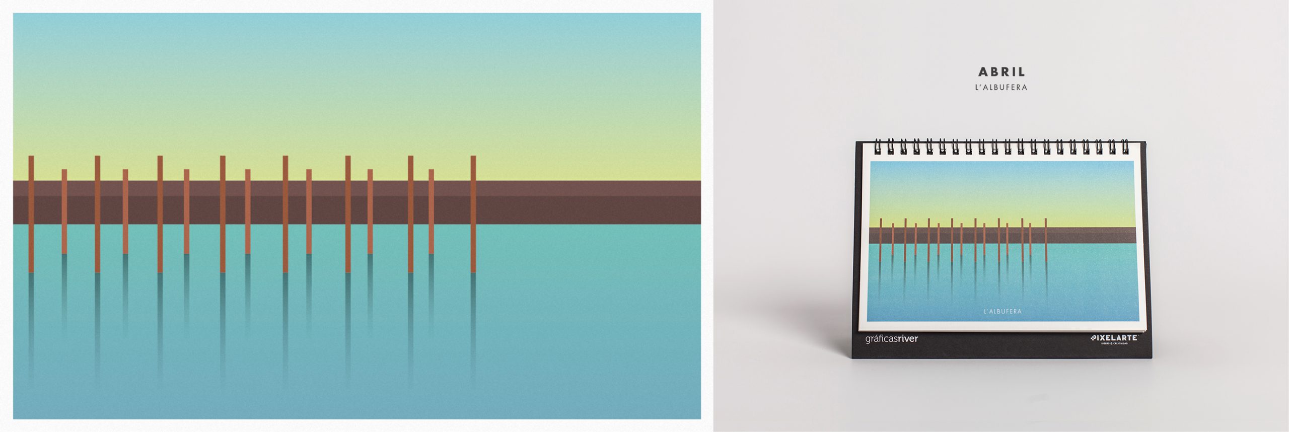 Para ello buscamos una temática que la verdad, no tardó en aparecer. Somos dos empresas valencianas que ponen mucho amor en todo lo que hacen y deseábamos llevar a los diferentes rincones de España imágenes de nuestra maravillosa tierra, así que nos pusimos a ilustrar algunos de los impresionantes Parques Naturales de la Comunitat Valenciana a modo de postal. Este trabajo, unido al amor por la impresión de Gráficas River, dio como resultado el calendario que ahora nos acompaña -a nosotros, y a otros muchos amigos y amigas- cada día del año.
